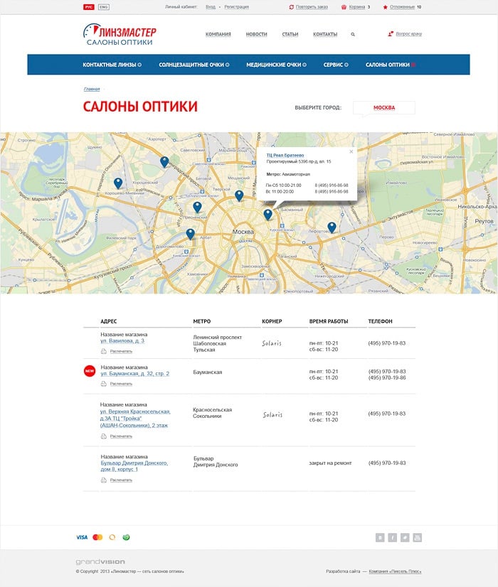 Главная Разработка и создание официального интернет-магазина для крупнейшей в России сети салонов оптики «Линзмастер». |