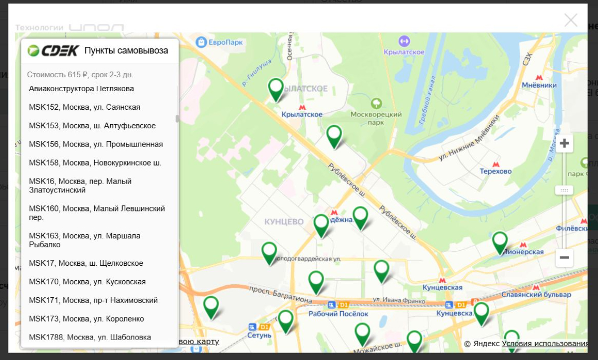 Появилась потребность в добавлении на сайт службы доставки с возможностью забрать товар из ПВЗ