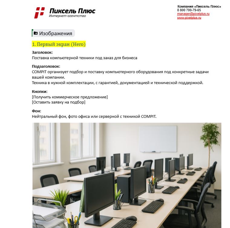 В результате разработки и внедрения новой страницы услуга «Поставка техники под заказ» получила полноценное представление на сайте. Пользователи могут ознакомиться с описанием услуги, преимуществами, этапами работы, кейсами и заполнить формы для запроса коммерческого предложения. Страница закрывает информационные потребности клиентов и создает дополнительную точку входа для целевого трафика из поиска.