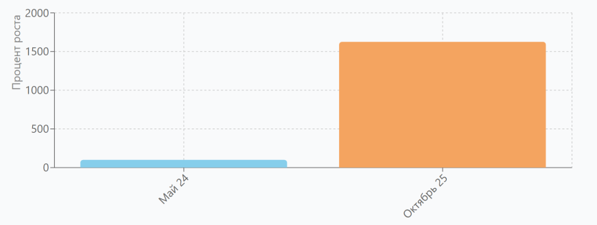 - Увеличить органический трафик без брендовых запросов на 1525% за период с мая 2024 по октябрь 2025 года.