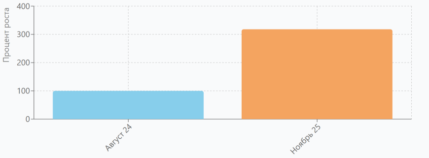 - Увеличить органический трафик без брендовых запросов на 218% за период с августа 2024 по ноябрь 2025 года.