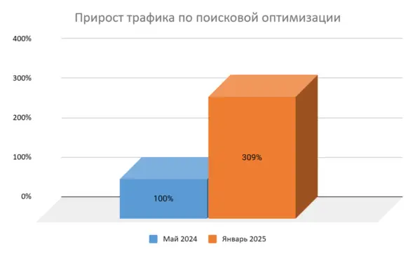 За 9 месяцев (май 2024 — январь 2025) поисковый трафик без брендовых запросов вырос более чем в 3 раза.