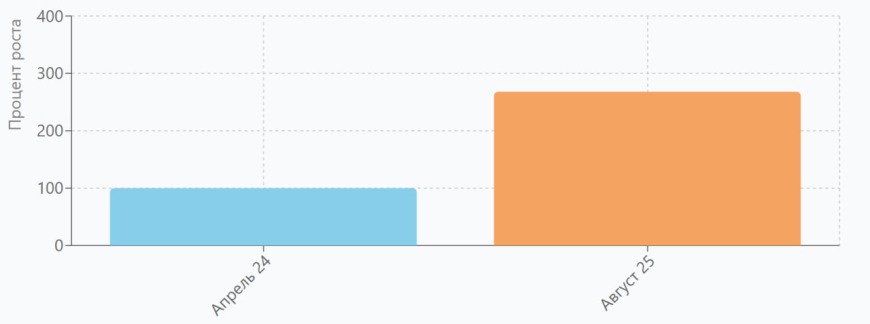 Трафик из поисковых систем за период активной работы над проектом вырос на 168% или почти в 2,7 раза без брендовых запросов.