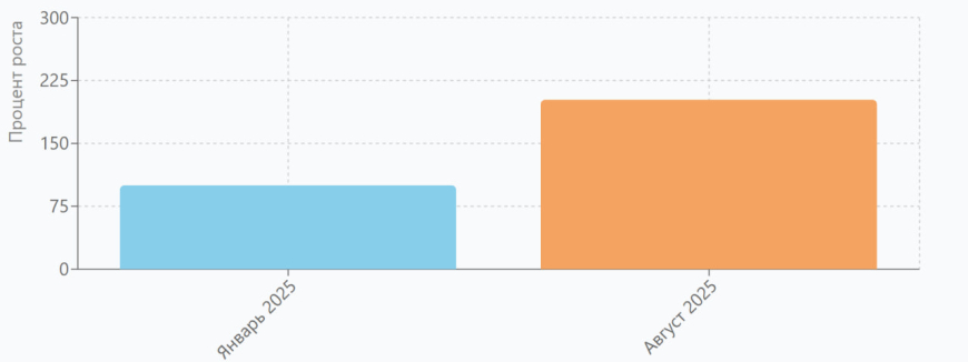 - Увеличить органический трафик без брендовых запросов на 102% за период с января 2025 по август 2025 года.