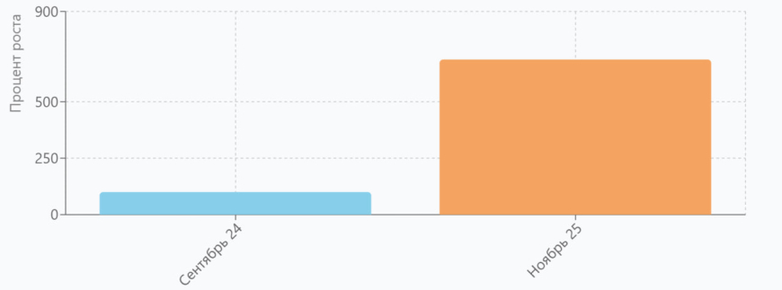 - Увеличить небрендовый поисковый трафик на 587% за период с сентября 2024 по ноябрь 2025 года.