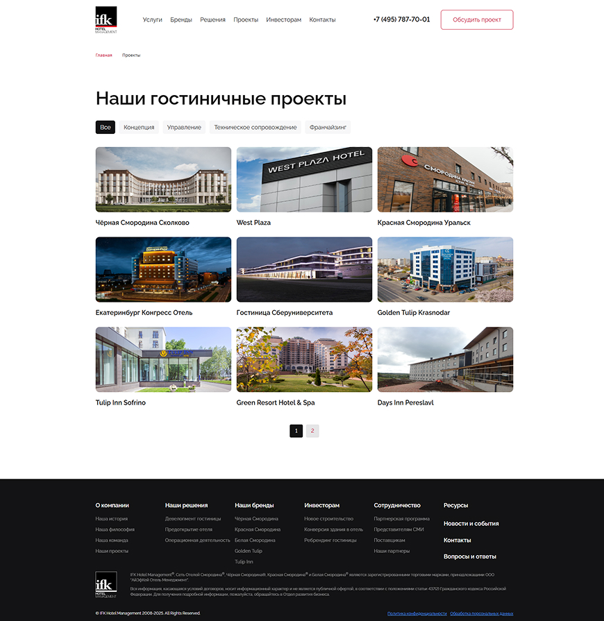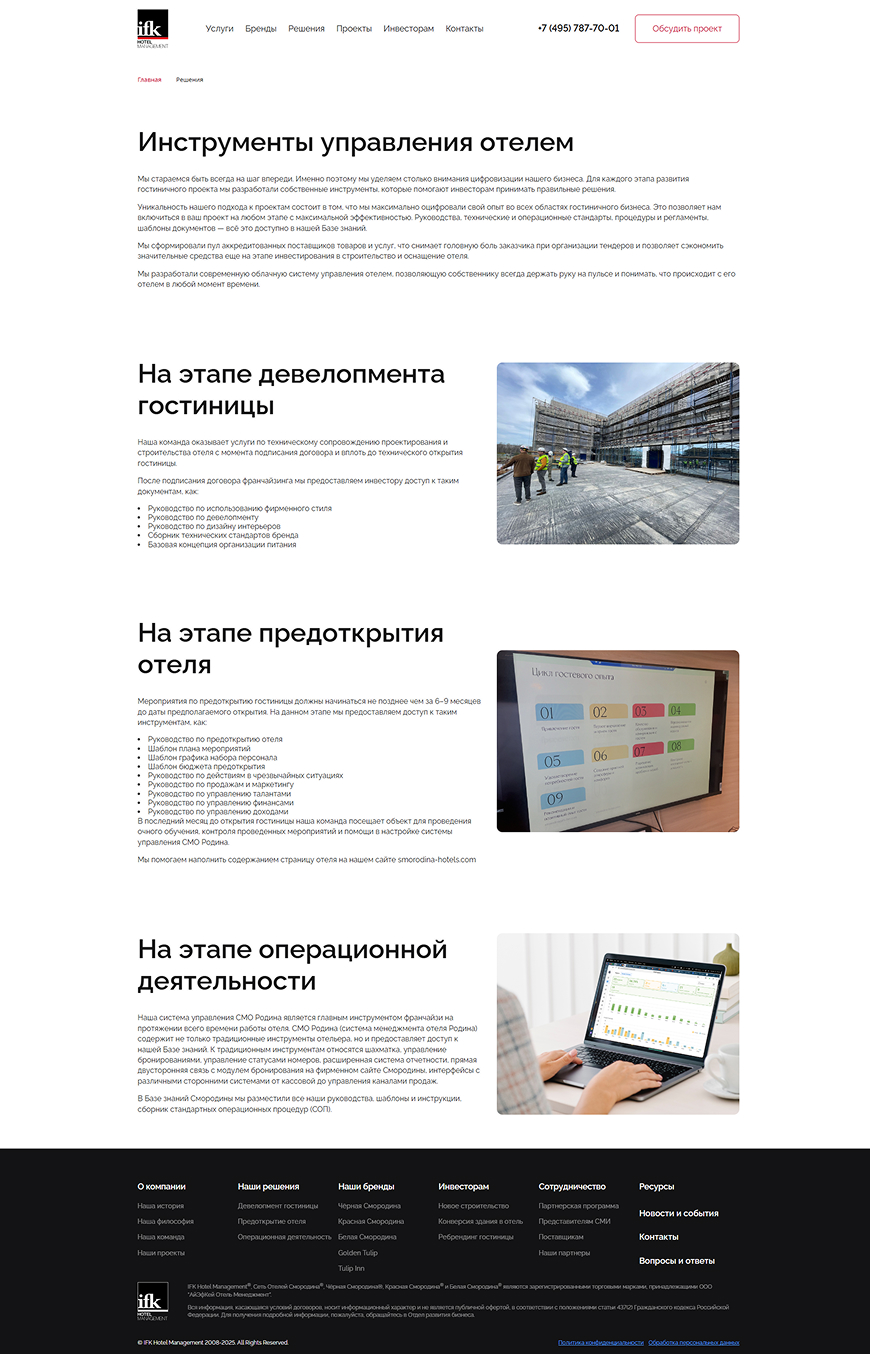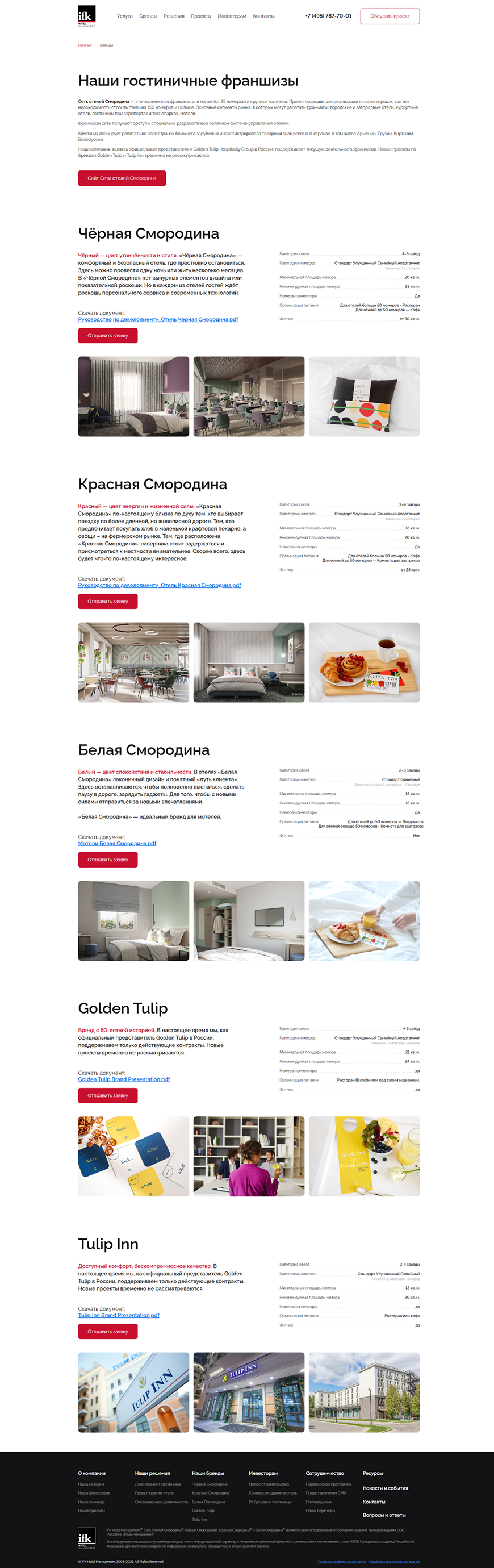 Страница «Бренды» Страница бренды с перечнем брендов принадлежащих компании и их особенностями. |