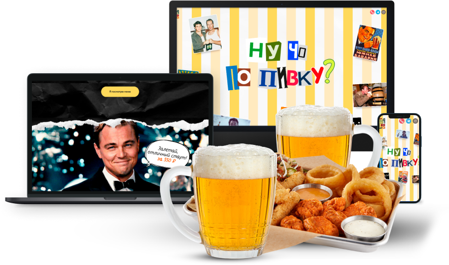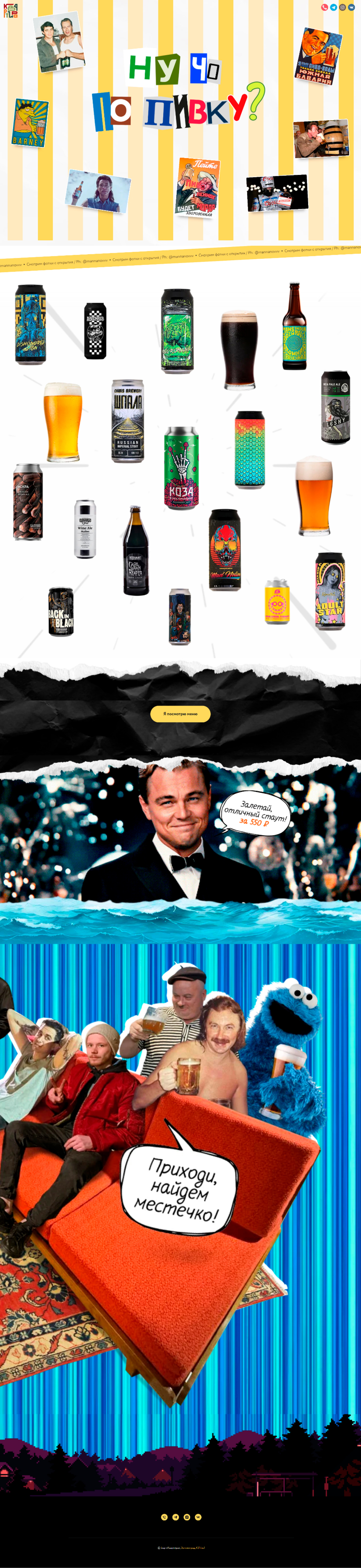 Главная страница Главная страница сайта с уникальными анимациями и каталогом пива. |