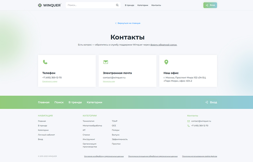 Страница «Контакты» |