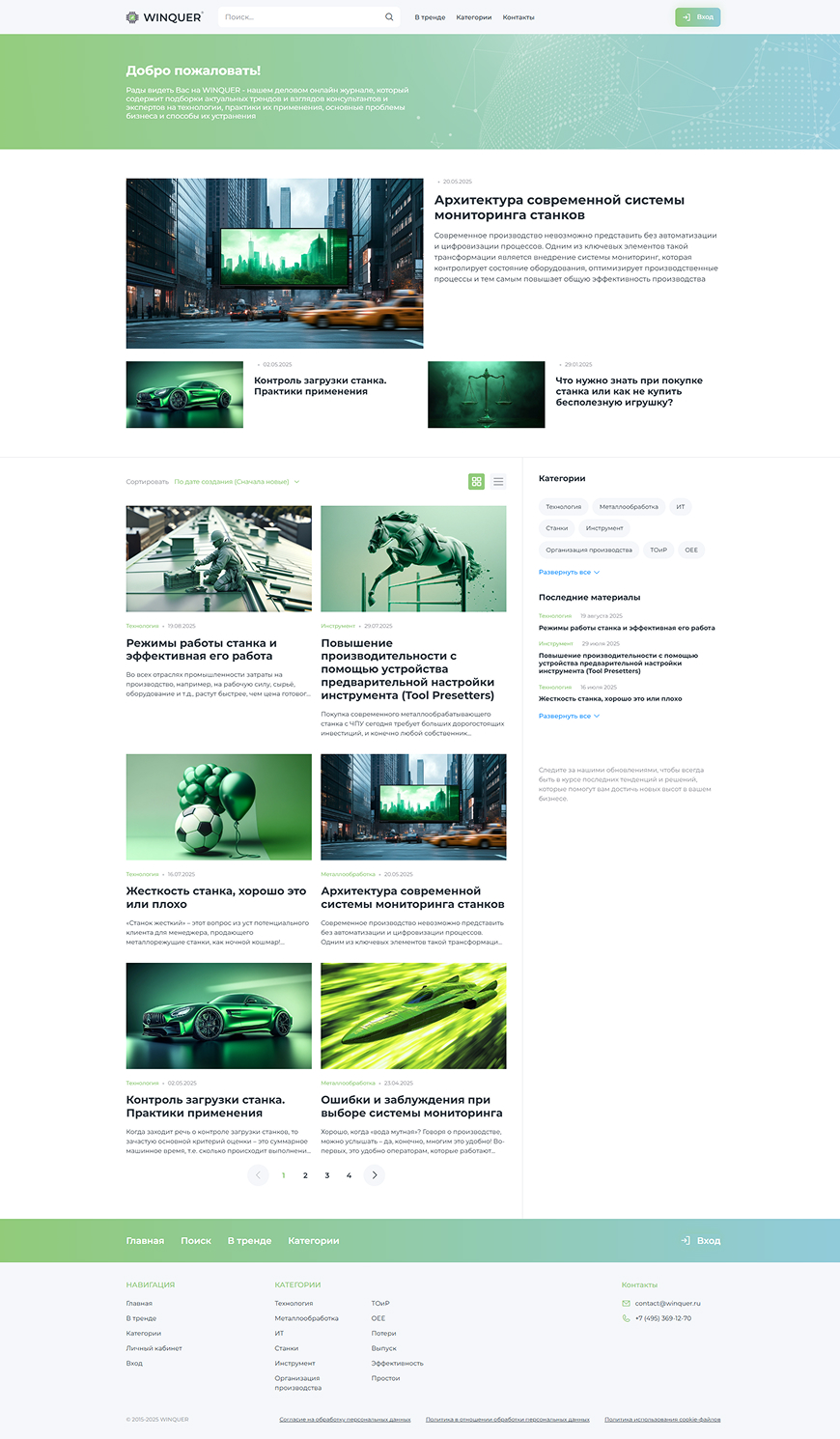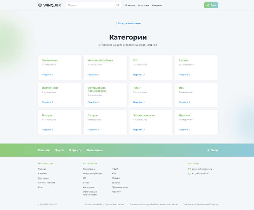 Главная страница Главная страница с трендовыми материалами и каталогом направлений. |