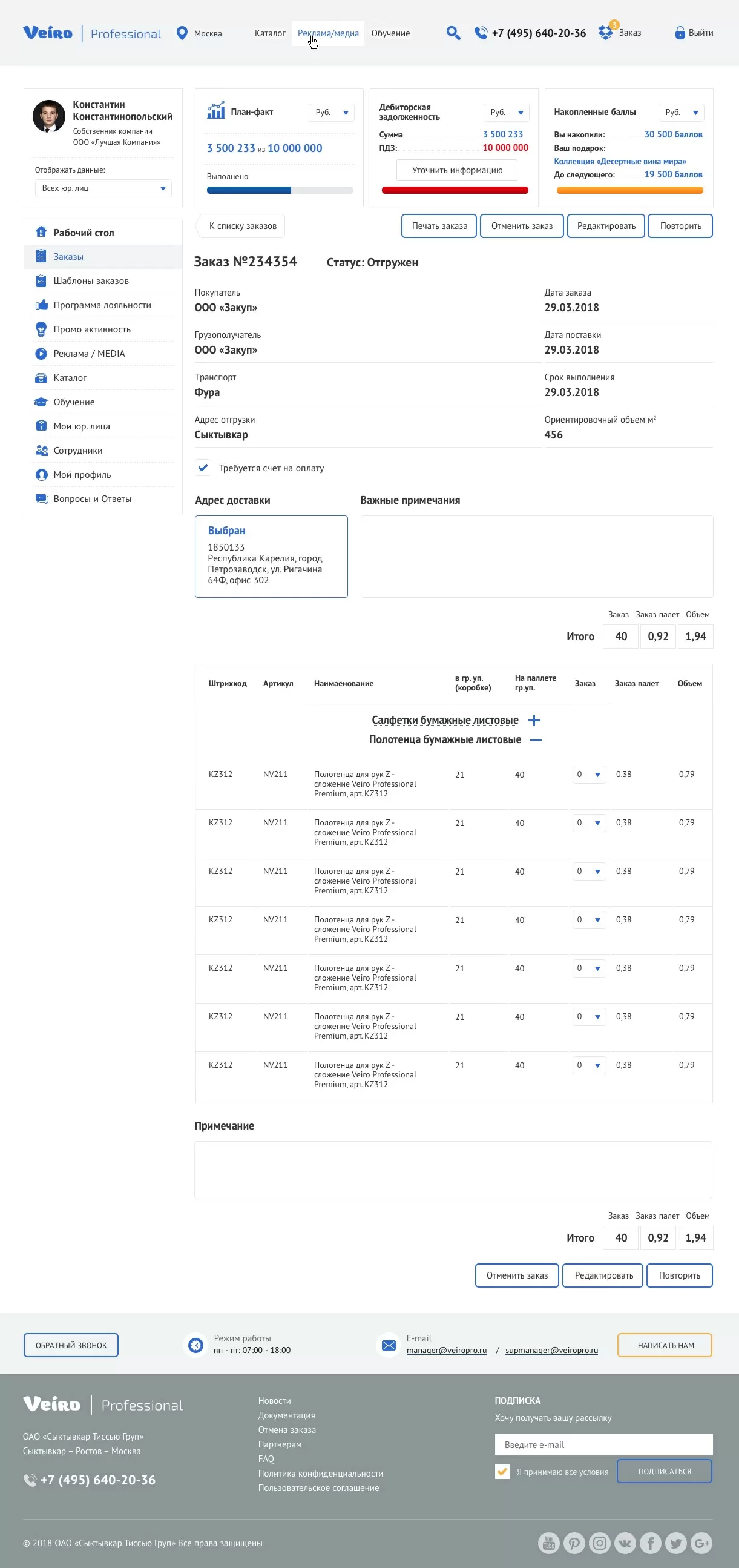 Заказ Страница с полной информацией о сформированном заказе. |