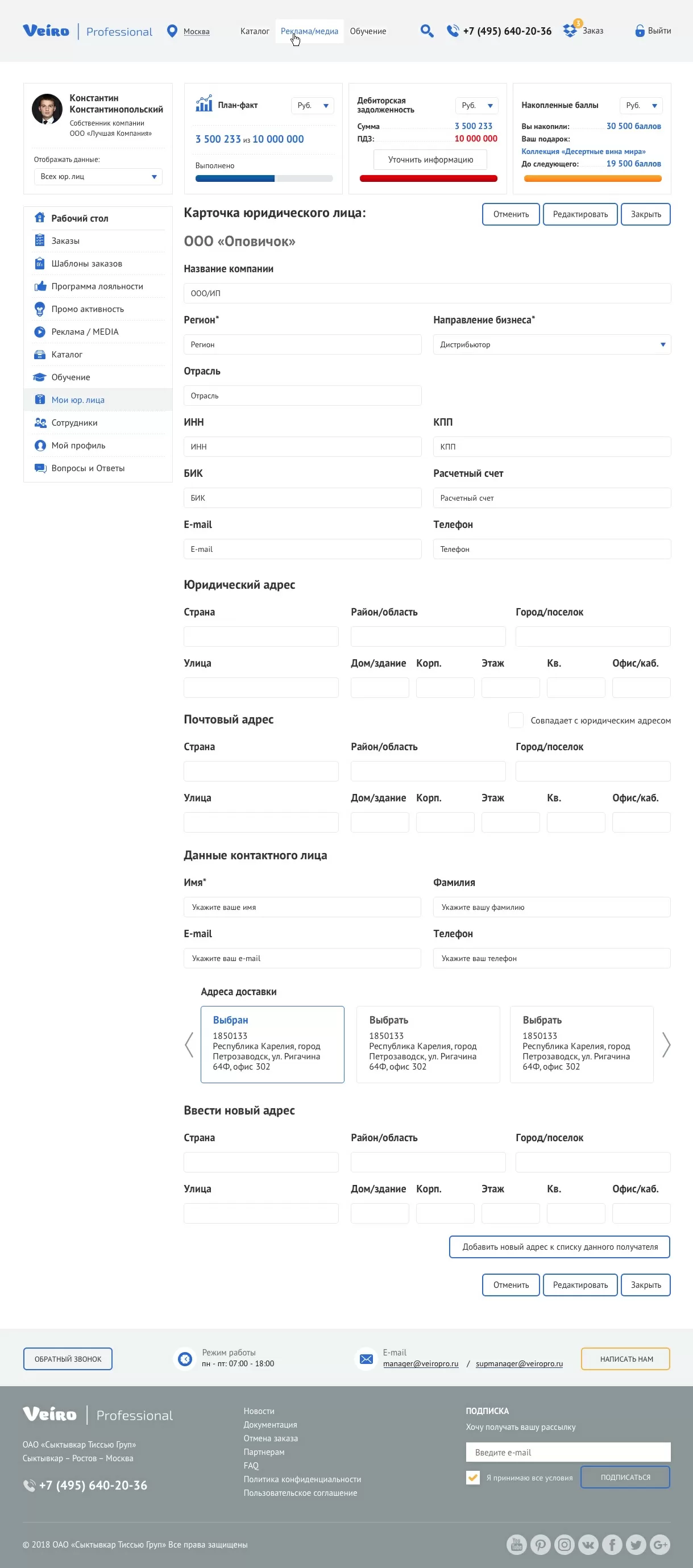 Карточка юридического лица |