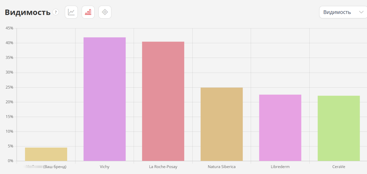 Перед тем как генерировать гипотезы, нужно понять, где бренд находится сейчас. Для этого мы сравниваем свой проект с конкурентами по собранным промптам минимум по двум метрикам, что удобно делать в проекте https://ai.pixeltools.ru/: