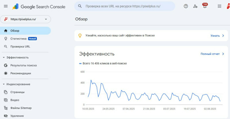 - Мониторинг статуса индексирования URL-адресов и управление отправкой страниц на переиндексацию.