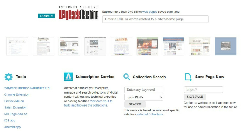 - Поиск и просмотр архивных версий сайтов за разные года и месяцы.