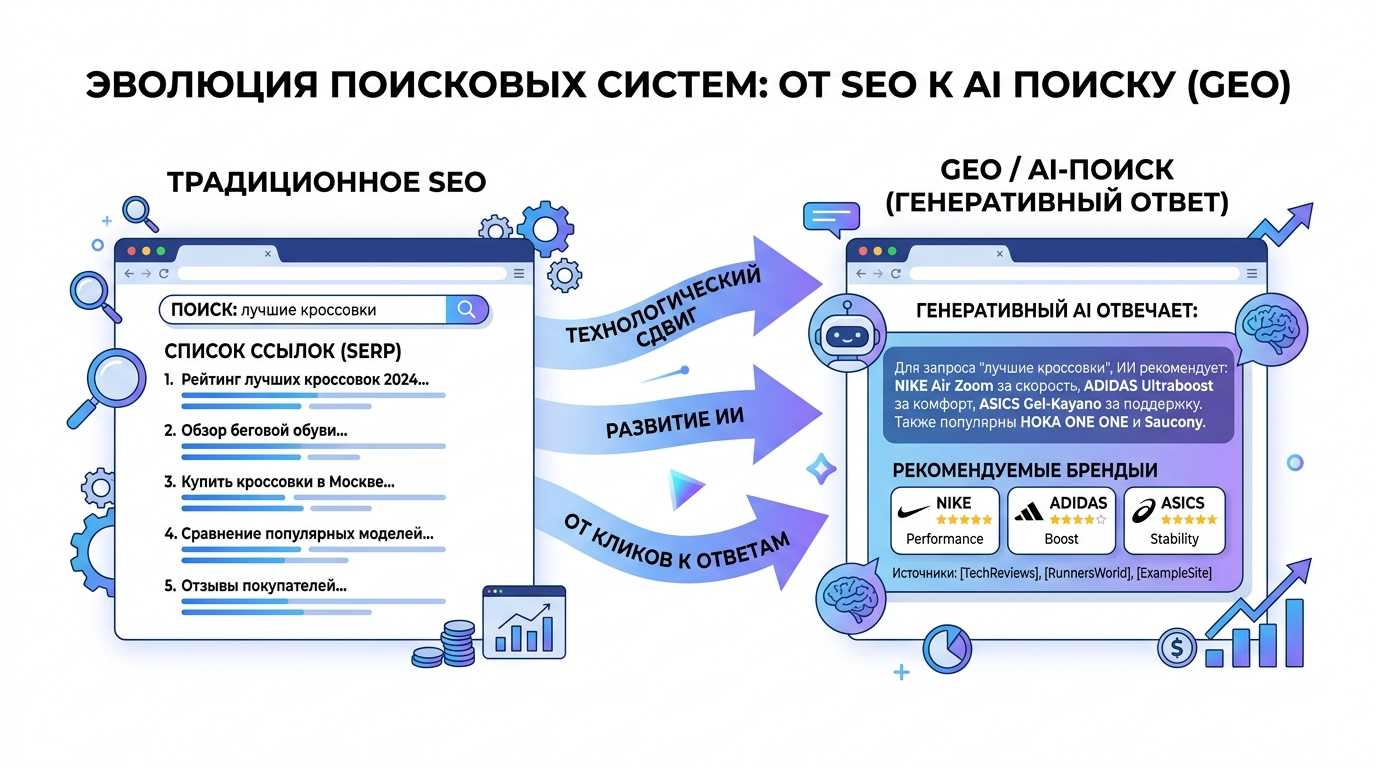 Все больше пользователей ищут информацию не только в Google и Яндексе, но и в нейросетях: ChatGPT, Gemini, Алисе, Perplexity и других. В таких сервисах пользователь получает готовый ответ с рекомендациями брендов, а не список сайтов.